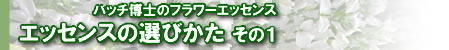 | バッチ博士のフラワーエッセンスは、緊急時用エッセンスを含めて全部で39種類。そのなかから自分に合ったものをチョイスするワケですが、どれを選べばいいのか、またどんな方法でセレクトすればいいのか迷ってしまう方もきっと多いのではないかと思います。自分に合っていないものを使用しても副作用がないかわりに何の変化も起こらないのがフラワーエッセンスの特質。ここでは、わたしが実際に試してみたもの、あるいは現在も実践しているセレクト方法を簡単にご紹介したいと思います。 |