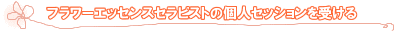 自分の手に負えないような大きな問題や悩みを抱えている場合や、心の中を見つめなおす作業が苦痛に感じられるときは、プロのフラワーエッセンスセラピストによる個人セッションを受けてみることをオススメします。現在直面している問題についてのカウンセリングをはじめ、あなたに今必要とされるテーマの設定、テーマに合ったエッセンスのリーディング、選ばれたボトルの説明やテーマとの関連性、ボトルを使ったヒーリングなど、独自のテクニックで包括的にあなたをサポートします。